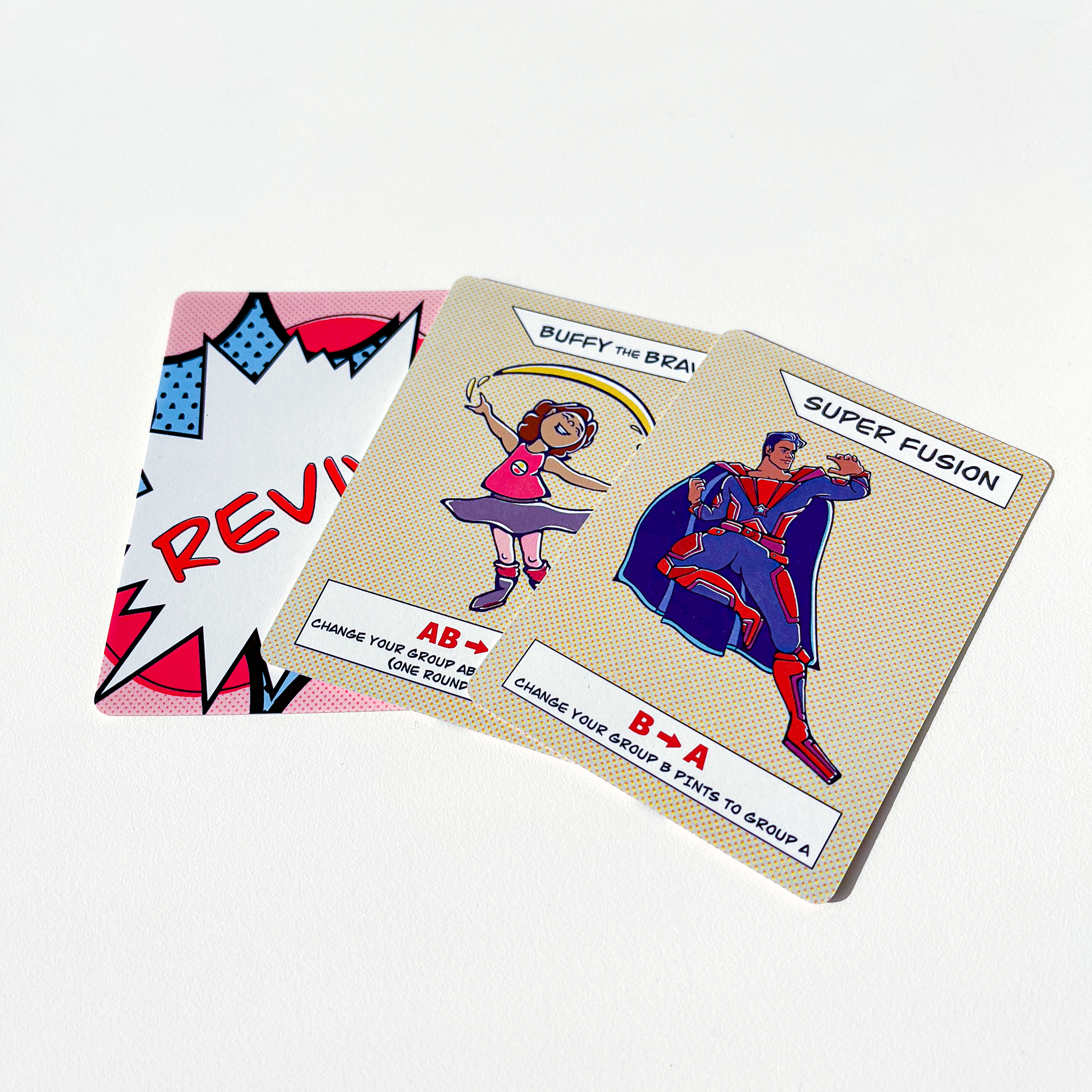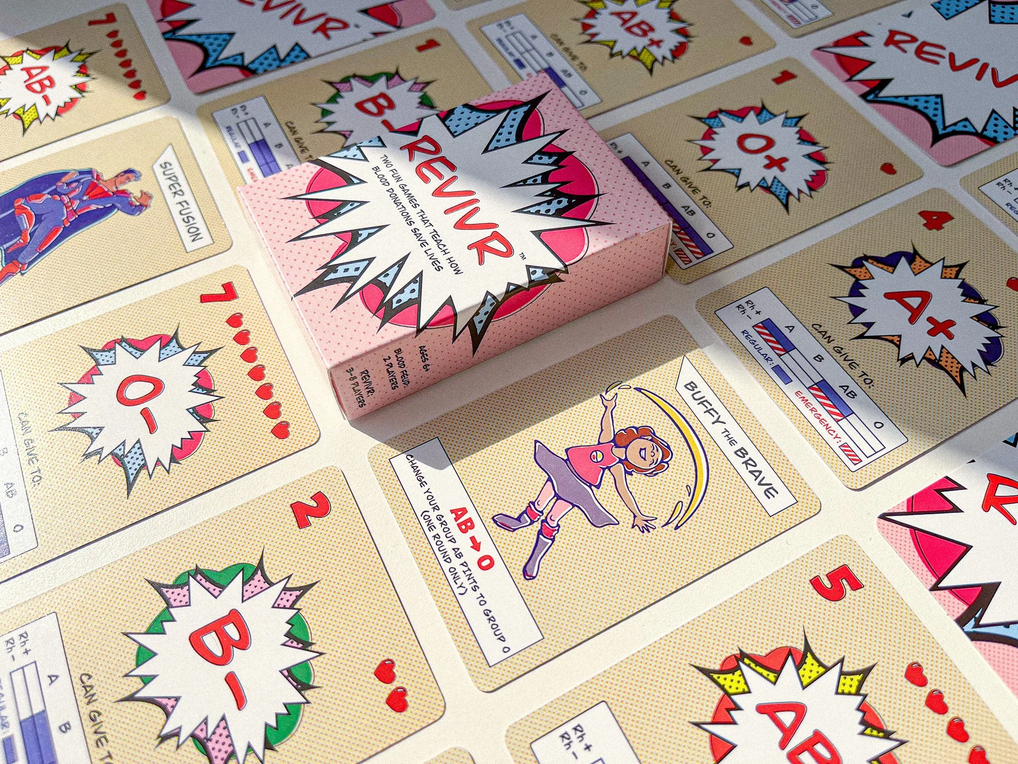 Like in the popular card game “War”, players use blood type matching rules to win pints and control the blood supply!
